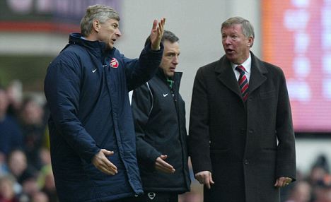ARSENAL V MAN UTD, PREMIER LEAGUE. PIC ANDY HOOPER..............DAILY MAIL WENGER AND FERGUSONArsene Wenger and Sir Alex Ferguson are well known famous rivals in the Premiere league history. There are many incidents which defines their rivary. The incident of pizza occured  at Old Trafford on October 2004, when Manchester United ended Arsenal’s 49-games unbeaten run  and Arsene wenger allegedly threw the pizza at Sir Alex Ferguson.
